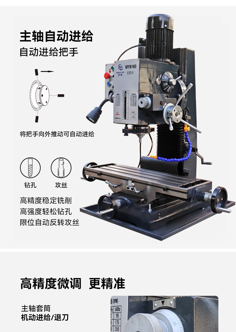 夢(mèng)鷹MY8160自動(dòng)鉆孔鉆銑床大功率工業(yè)級(jí)小型銑床